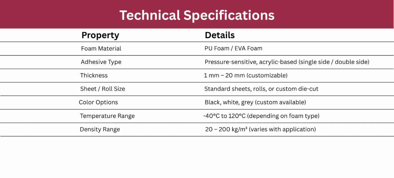 Adhesive-coated foam is polyurethane or EVA foam coated with a strong pressure-sensitive adhesive, making it easy to apply to various surfaces. It combines cushioning, sealing, and insulation with convenient peel-and-stick installation.